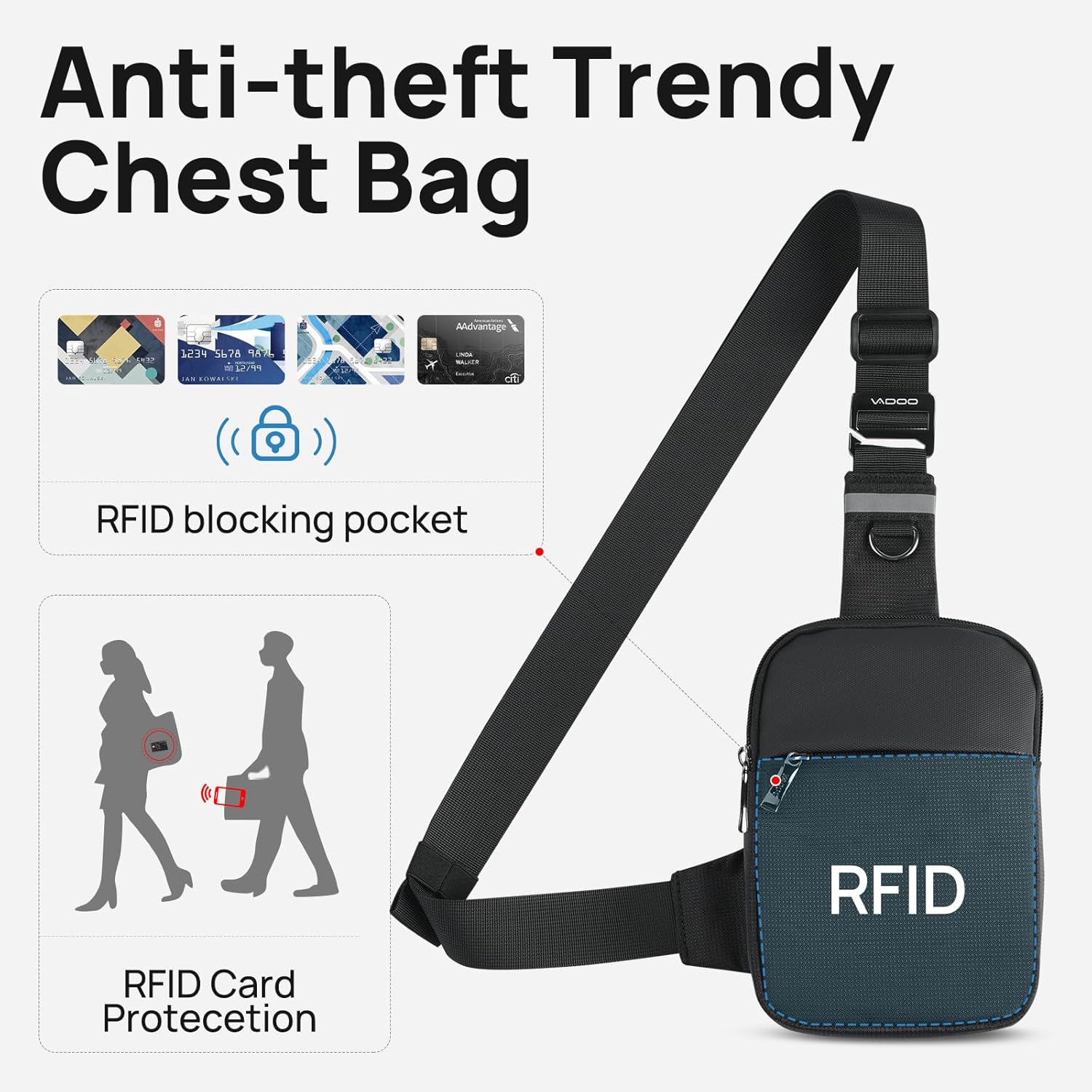 VADOO Mini Sling Bag, Small Crossbody Bag with RFID Blocking for Women and Men, Lightweight Chest Phone Bag for Travel Casual