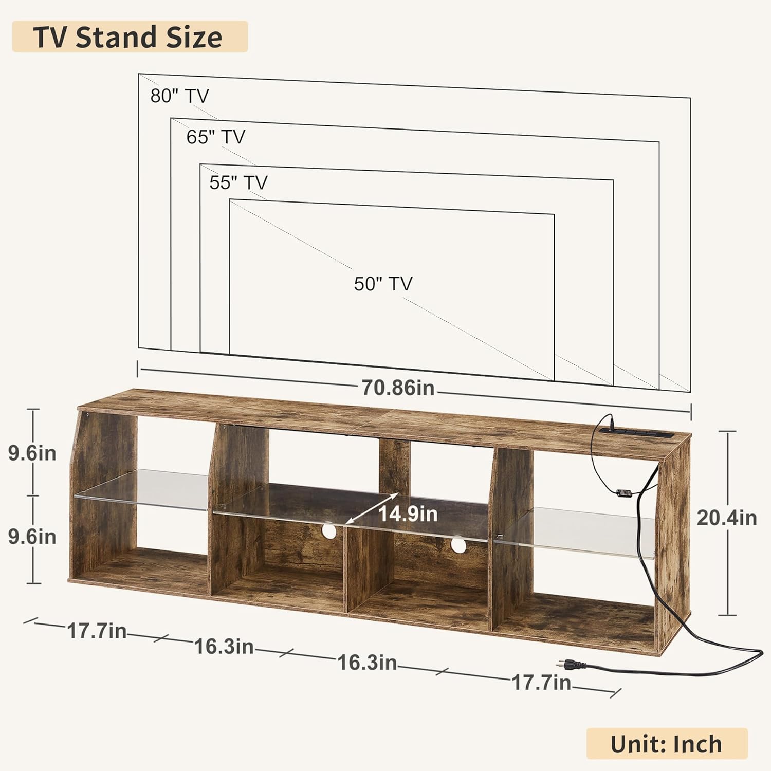 【70 Inch TV Stand】 VECELO Console Support TV up to 80 inches. Spacious desktop: 70.86” x 14.9”. Prop your TV on this entertainment stand, or mount your TV to use it as a media cabinet, this TV table will be an eye-focused piece.