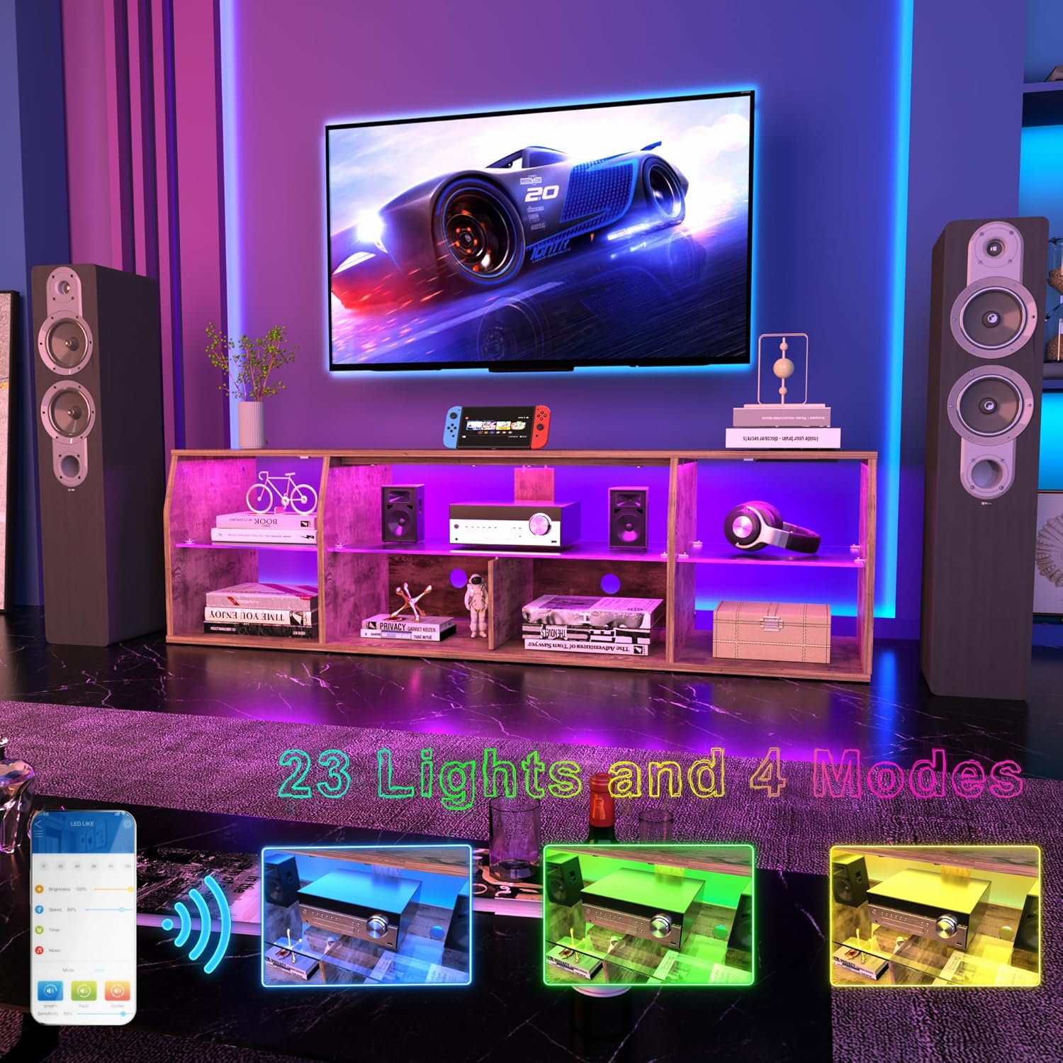 【Abundant LED lights】 Industrial TV cabinet has a variety of colors of lights, creating a vivid entertainment atmosphere during the day and at night. Up to 23 lights and 4 modes for your choice.