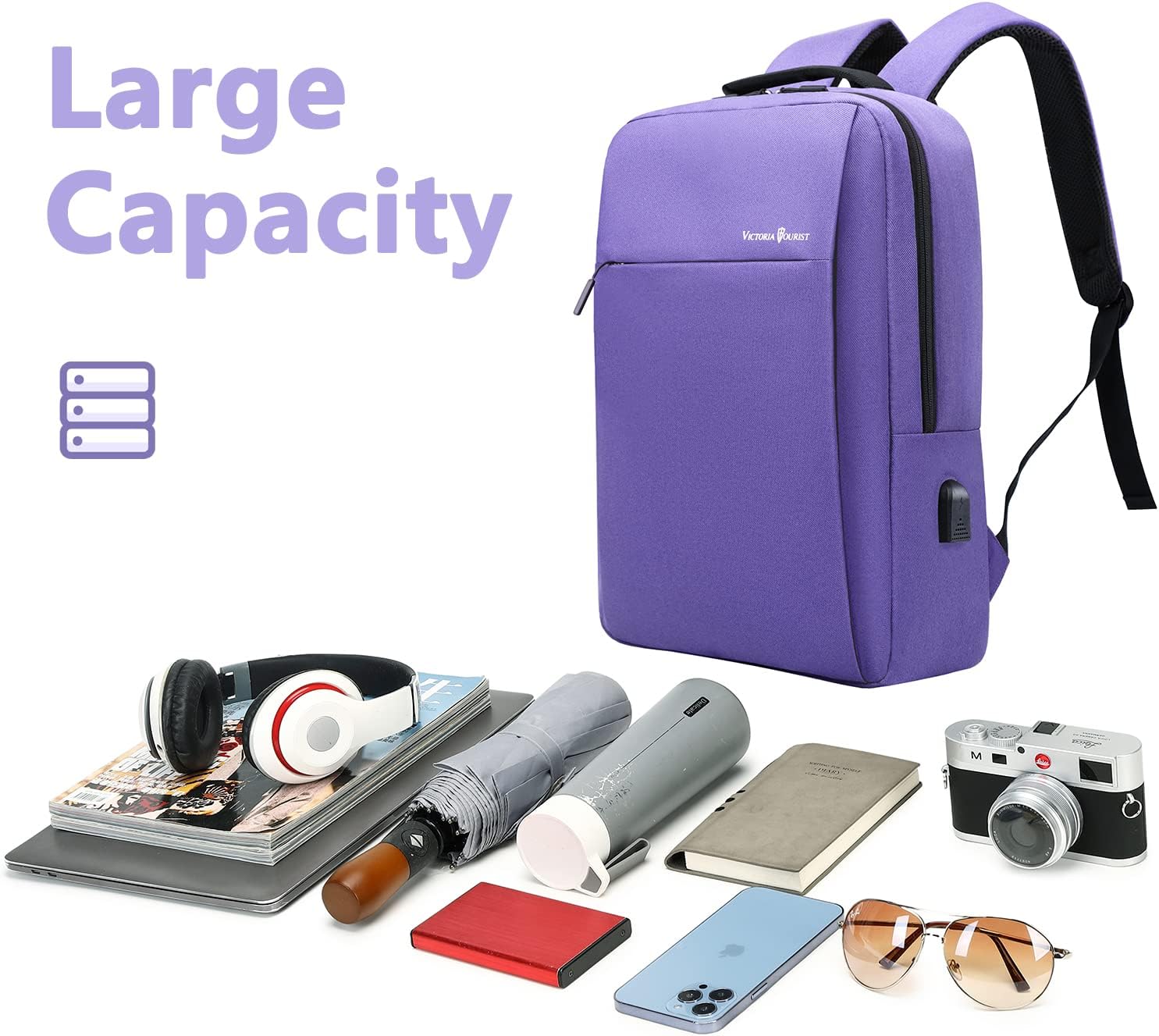Victoriatourist Laptop Backpack for Women, Computer Backpack College Bookbag with USB Charging Port, Water Resistant Daypack Cute Book Bag for Ladies Fit 15.6 Inch Notebook(Purple)