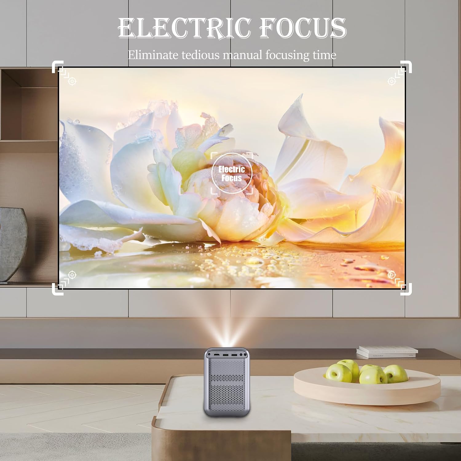 Video Projector Support 1080p [Electic Focus] Mini Portable Smart TV Projector WiFi Bluetooth Built-in Netflix, Home Theater Projector 350 ANSI Support 4K, 4D 4P Keystone, 50% Digital Zoom, YouTube