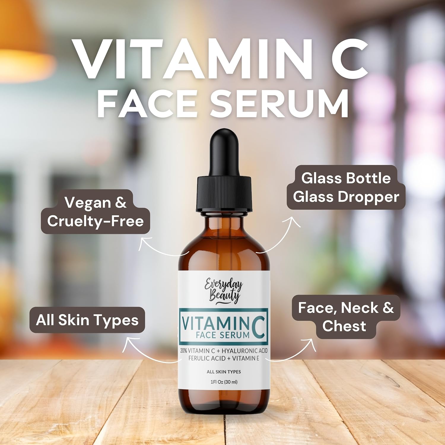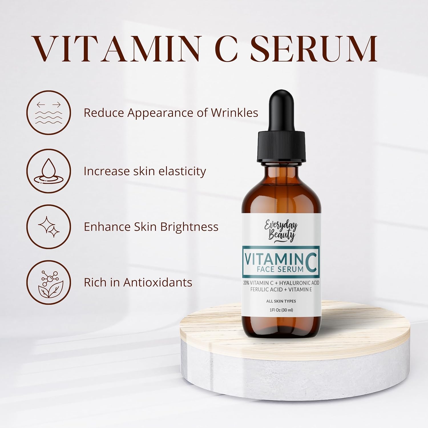 Vitamin C Serum For Face – Anti-Aging Skin Brightening Serum With 20% Vitamin C, Hyaluronic Acid, Vitamin E & Ferulic Acid – 1 Fl Oz