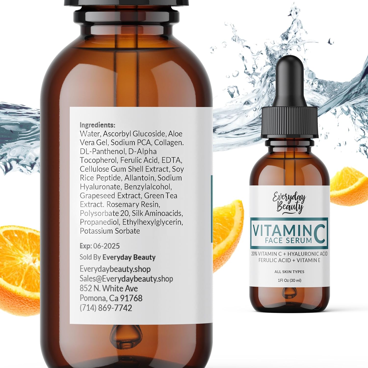 20% Vitamin C Face Serum Ideal For Sensitive Skin – Unlike ascorbic acid, Ascorbyl Glucoside is very stable and works great at combining with other serum ingredients to increase its overall effectiveness. It is also perfect for sensitive skin where ascorbic acid is known to irritate skin.