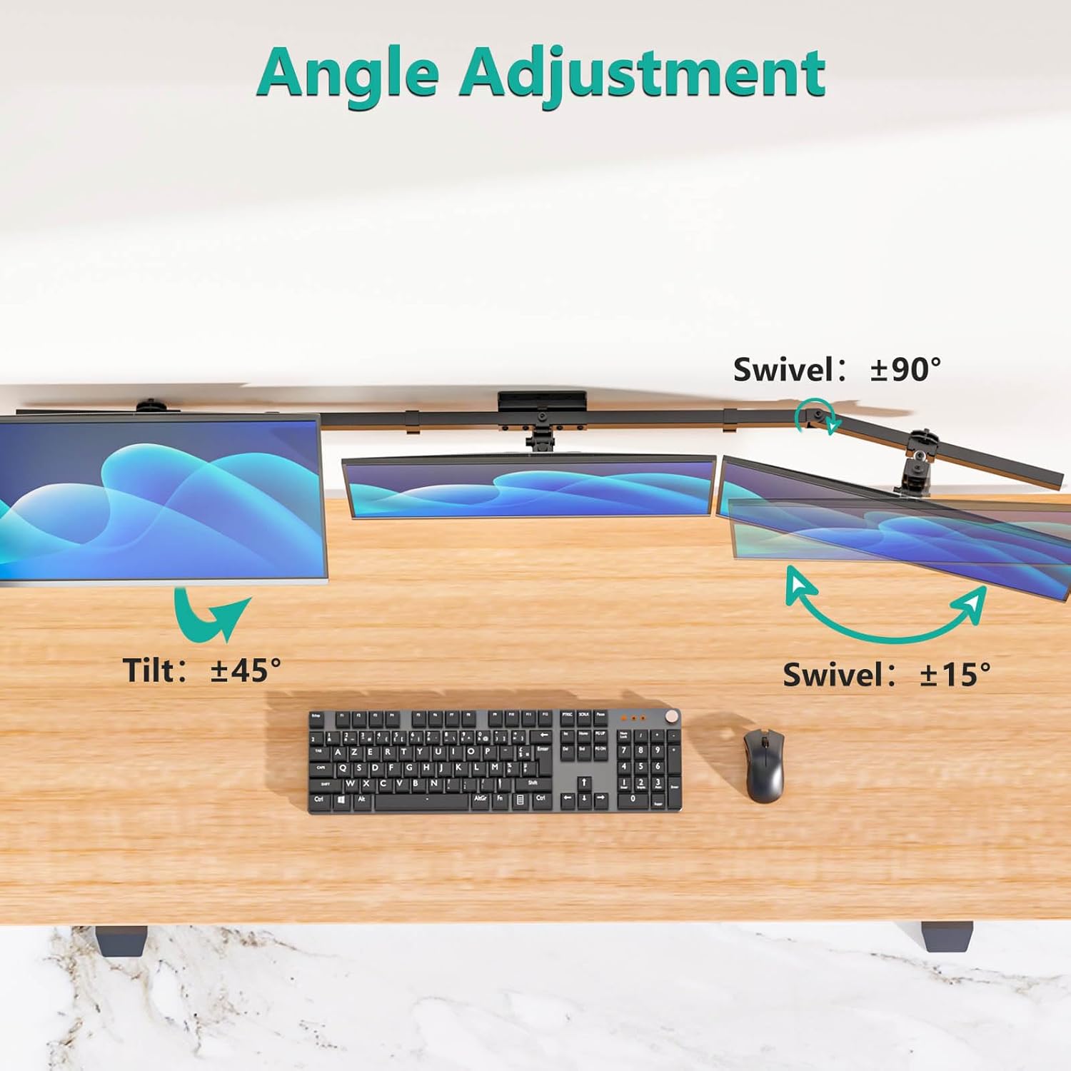 Fully Adjustment: Adjustable mount offers +45° to -45° tilt, ±15° swivel, and 360° rotation for comfortable viewing angles. Monitors can be placed in portrait or landscape orientation.