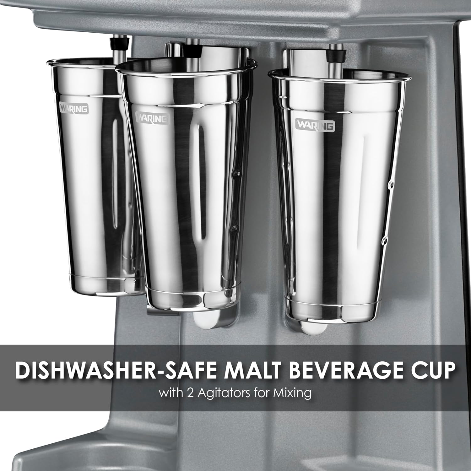 Mix perfect shakes, one, two or three at a time, with the Waring® WDM360TX Heavy-Duty Triple-Spindle Drink Mixer with Timer. Automatic shutoff lets you attend to other tasks, while three independent, 1 HP motors and ultra-aggressive agitators power through the coldest, hardest ice creams. Increased cup clearance helps you avoid spills while making creamy milkshakes or other frozen drinks.