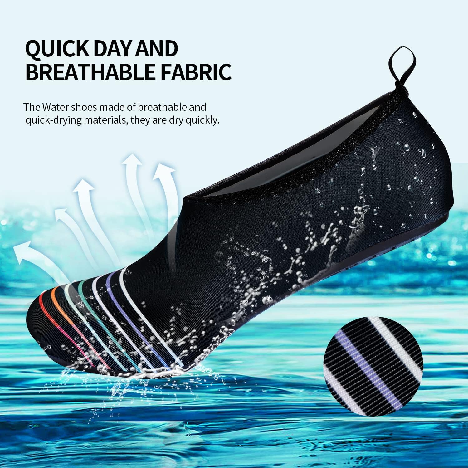 BOWENBO soft aqua socks which non-slip rubber sole provides strong support and is strong enough to protect your feet from gravel, stone and rough ground.