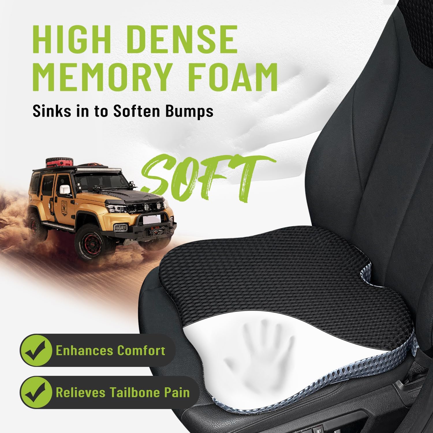High-Density Memory Foam Tailbone Pain Relief Cushion : This seat cushion for tailbone pain relief is made of high-density memory foam with slow rebound characteristics. It comfortably conforms to your body during driving, significantly reducing bumps and relieving pain in the lower back, tailbone, and buttocks.