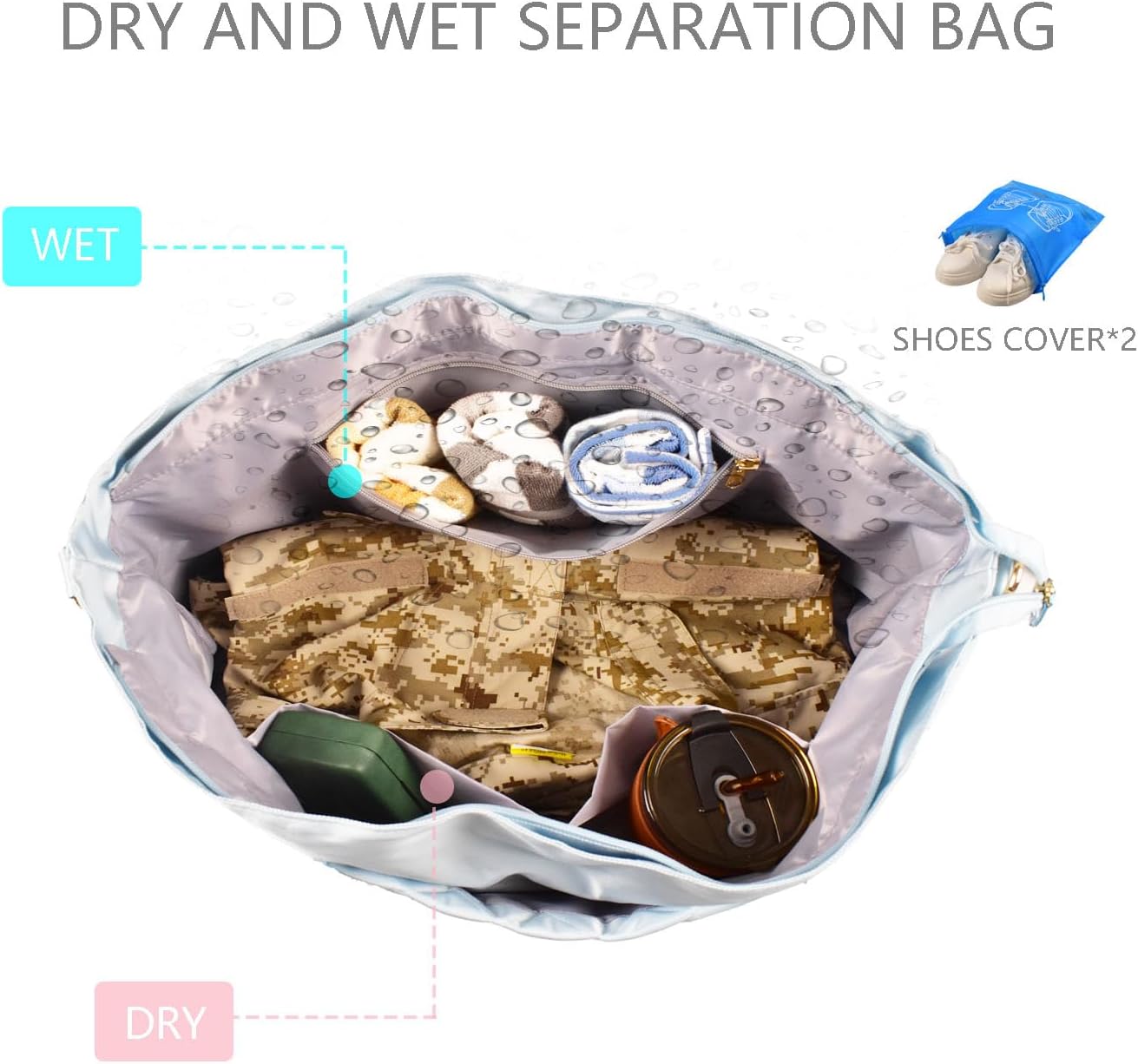 Internal Wet/Dry Separation: It comes with a built-in zippered wet bag to keep wet clothes, towels, and toiletries separate from the dry items