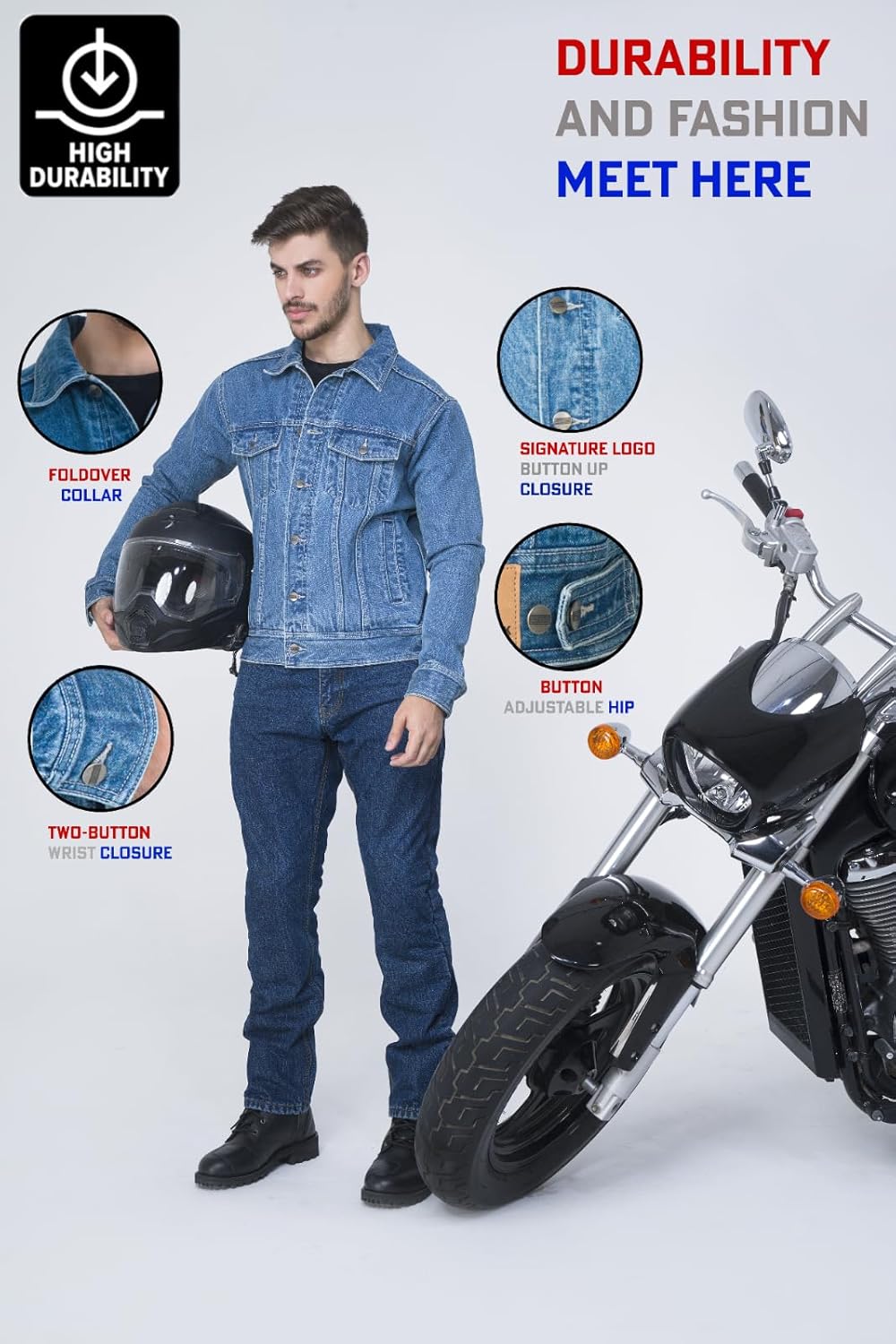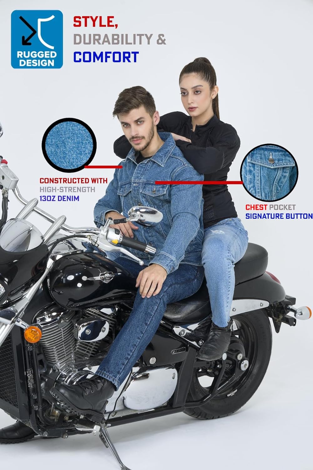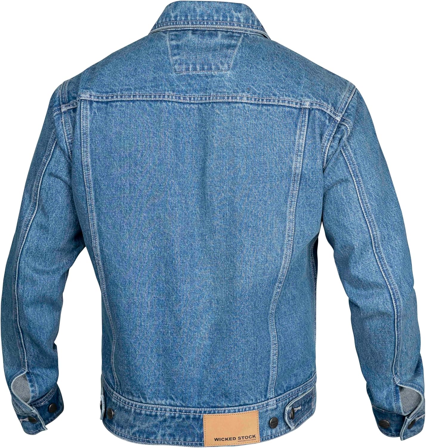 WICKED STOCK Motorcycle Jacket Men-Jeans Jacket motorcycle-Trucker Jacket for Men-Denim Casual Rugged Wear Riding Jacket