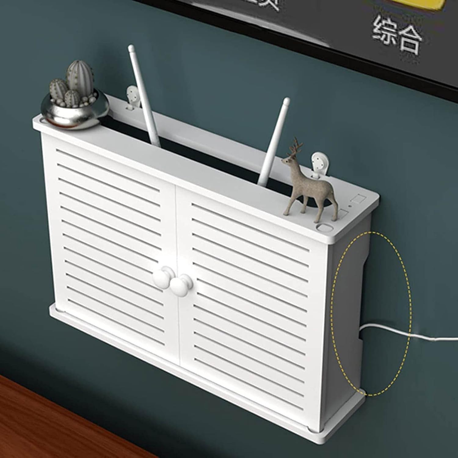 Wireless Router Rack Living Room Wall-Mounted, WiFi Router Storage Box Wall Decoration Rack, TV Cabinet Power Cord Finishing Box Shelves for Wall Storage 17 Stands(White)
