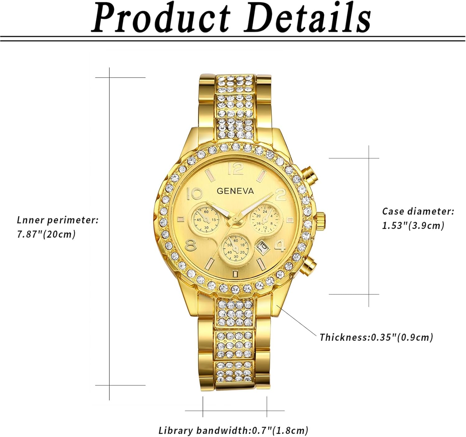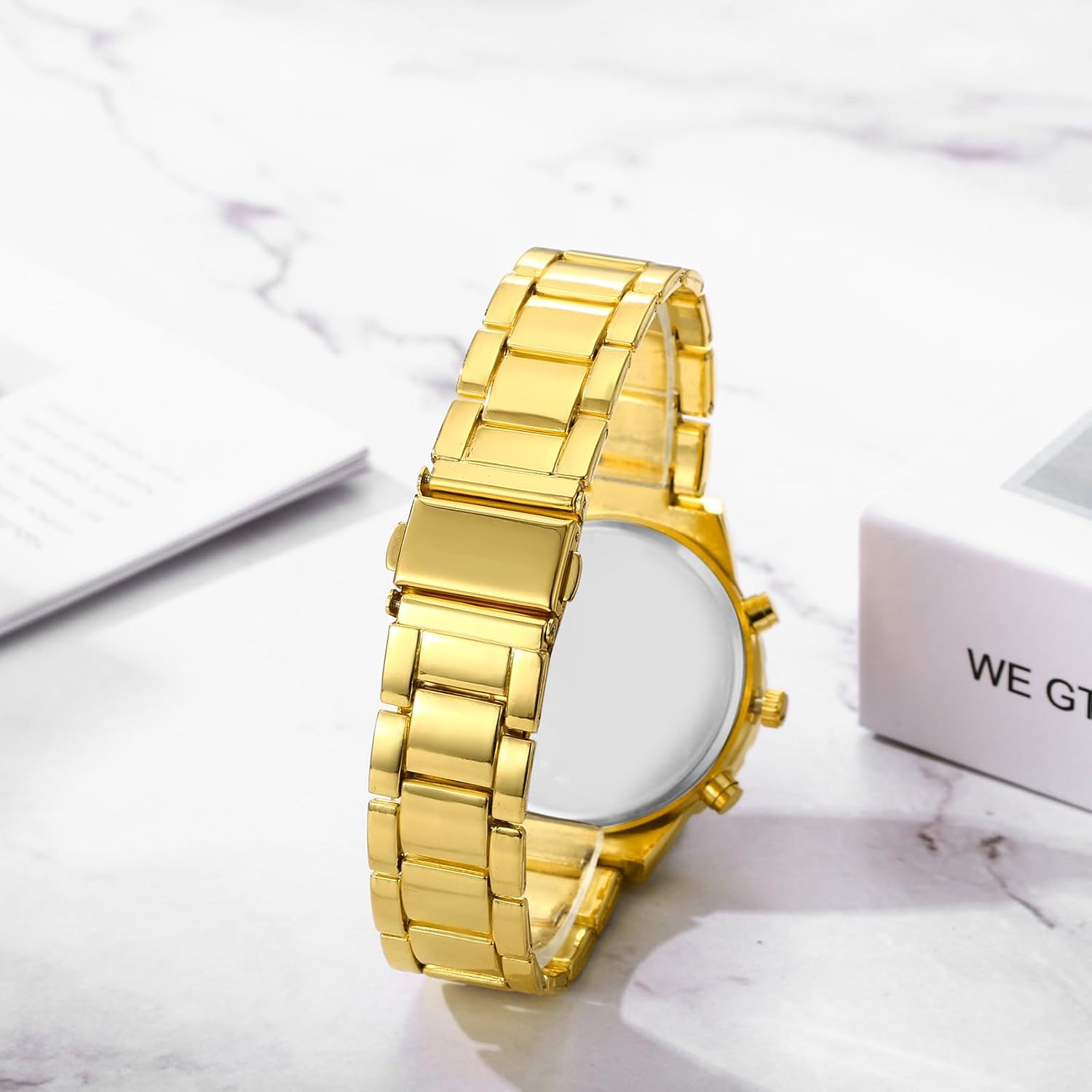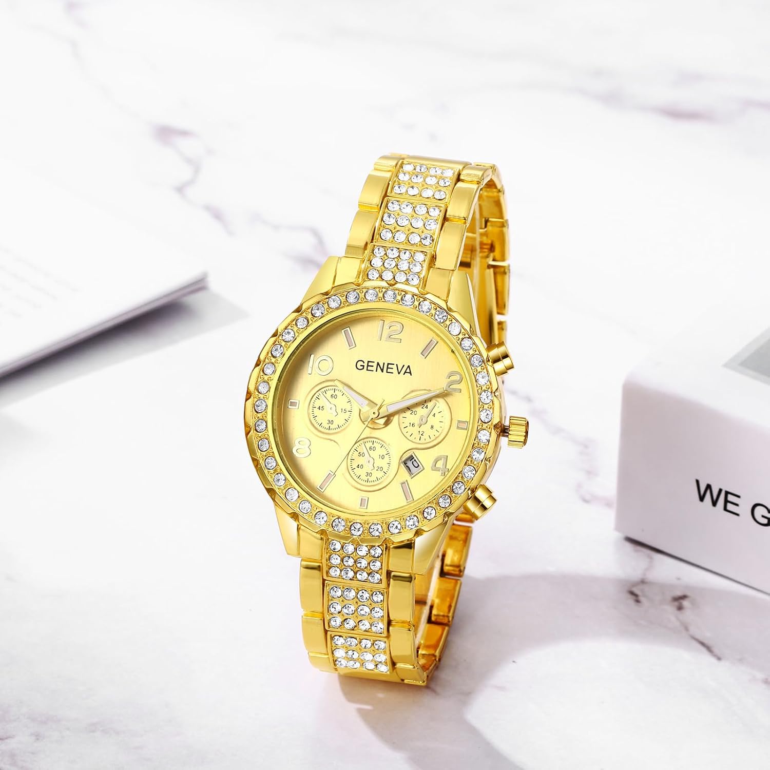 Women Men Gold Diamond Watch Unisex Bling Luxury Waterproof Quartz Calendar Analog Date Stainless Steel Wrist Watch