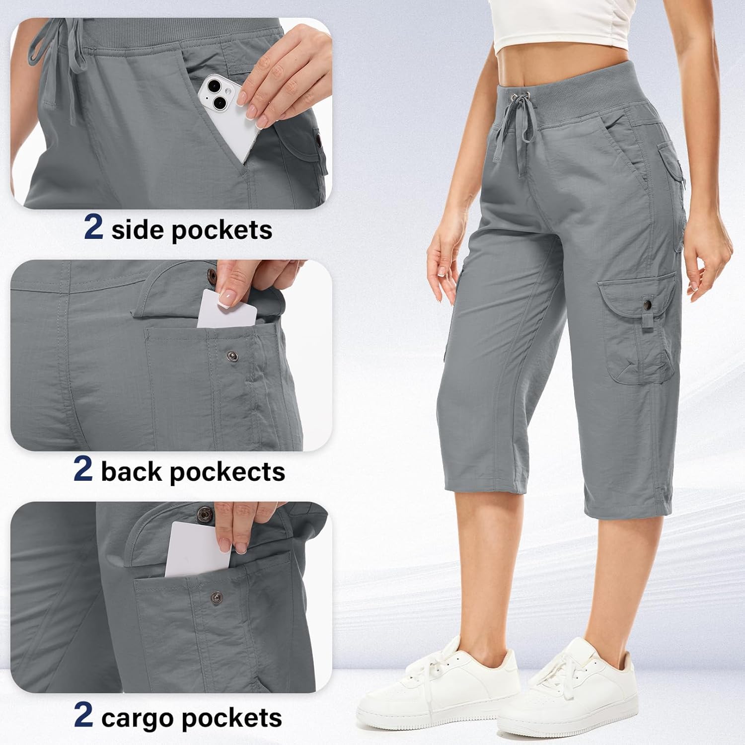 nayjury Womens Cargo Capris Hiking Quick Dry Travel Casual Lightweight Pants 6 Pockets
