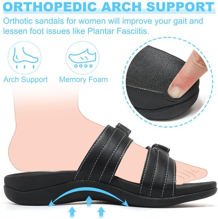 Womens Fashion Orthotic Slides Ladies Lightweight Athletic Yoga Mat Sandals Slip On Thick Cushion Slippers Sandals With Comfortable Plantar Fasciitis Arch