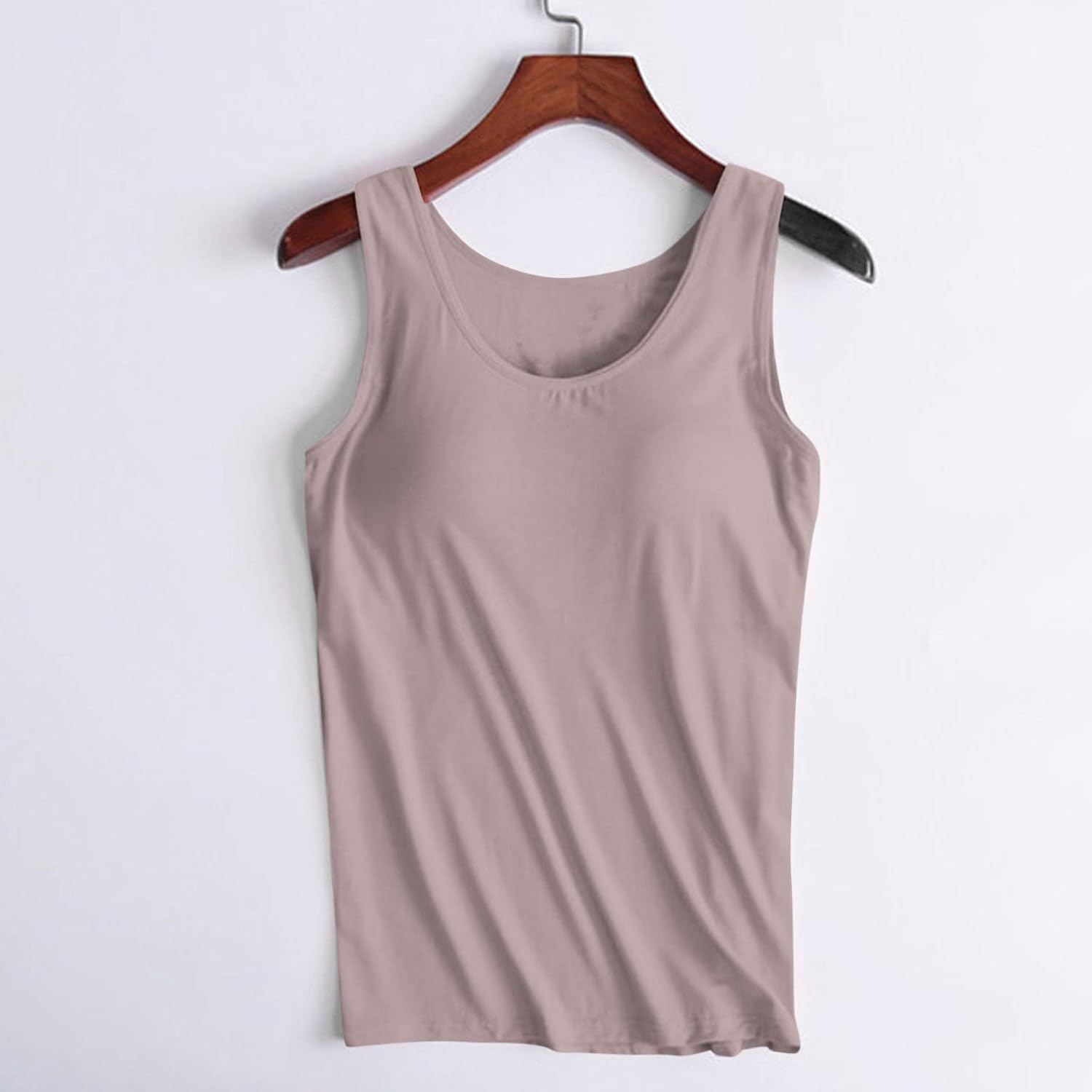Women’s Yoga Tank Tops with Built-in Bra Plus Size Casual Tanks Round V Neck Sleeveless Basic Layer Shirts M-4X