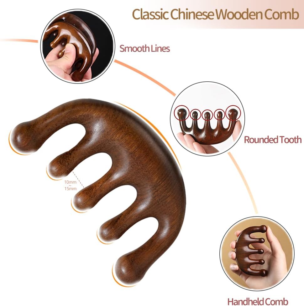 Round Tooth Massage Comb – The sandalwood wide tooth comb is perfect for head massage or guasha, scalp massager are smooth and round which made it very easy to use and super comfortable. The other side is easy to hold, can use it for head, neck, shoulder, back, hand, arms and other fatigued body area massage.