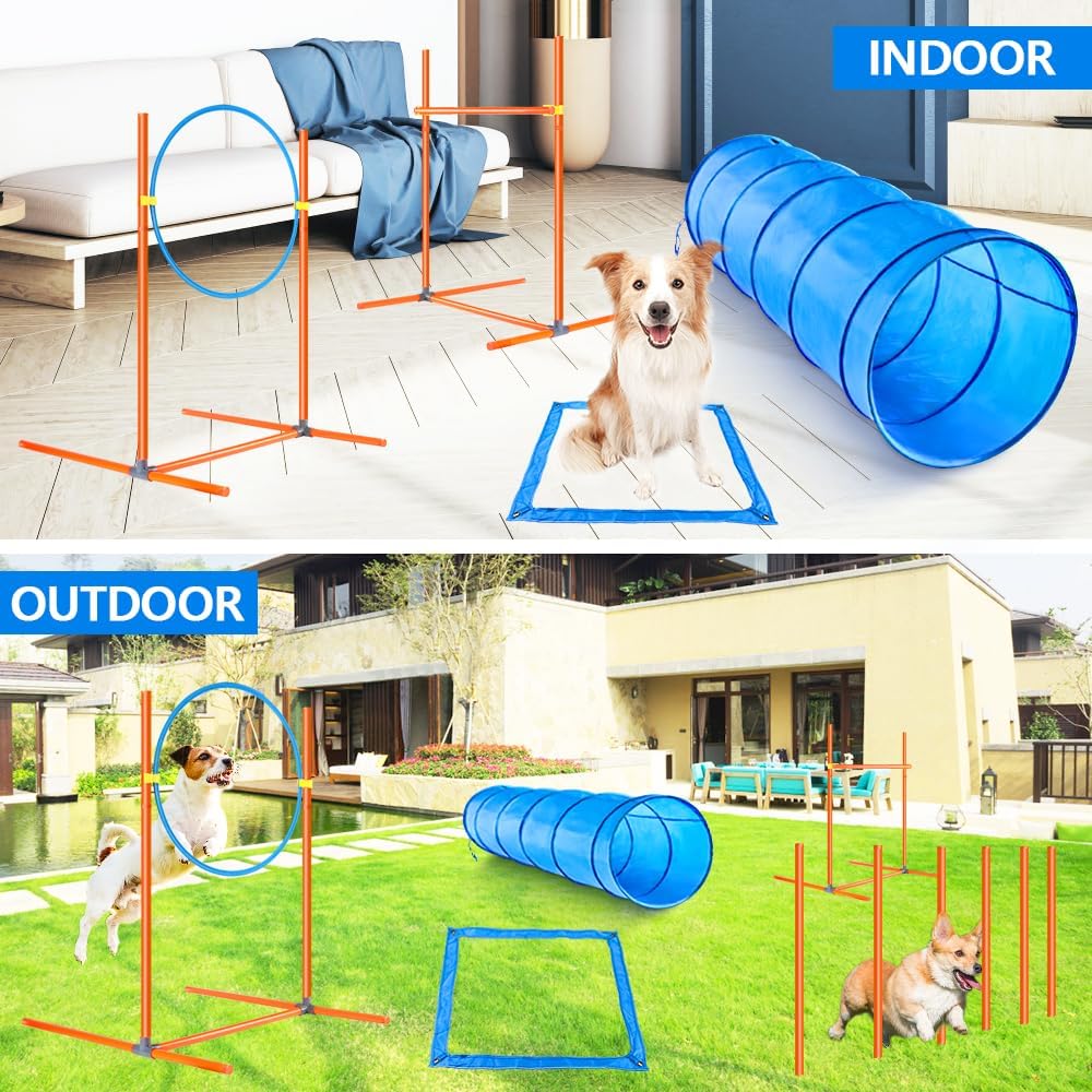 THE PERFECT DOG AGILITY SET – Made of ABS material, safe and non-toxic, Lightweight, durable that can be used indoors or outdoors for practicing in all weather. Perfect for dogs sharpens obedience, speed, dexterity, and dog quality of life; Use for casual play or introductory training