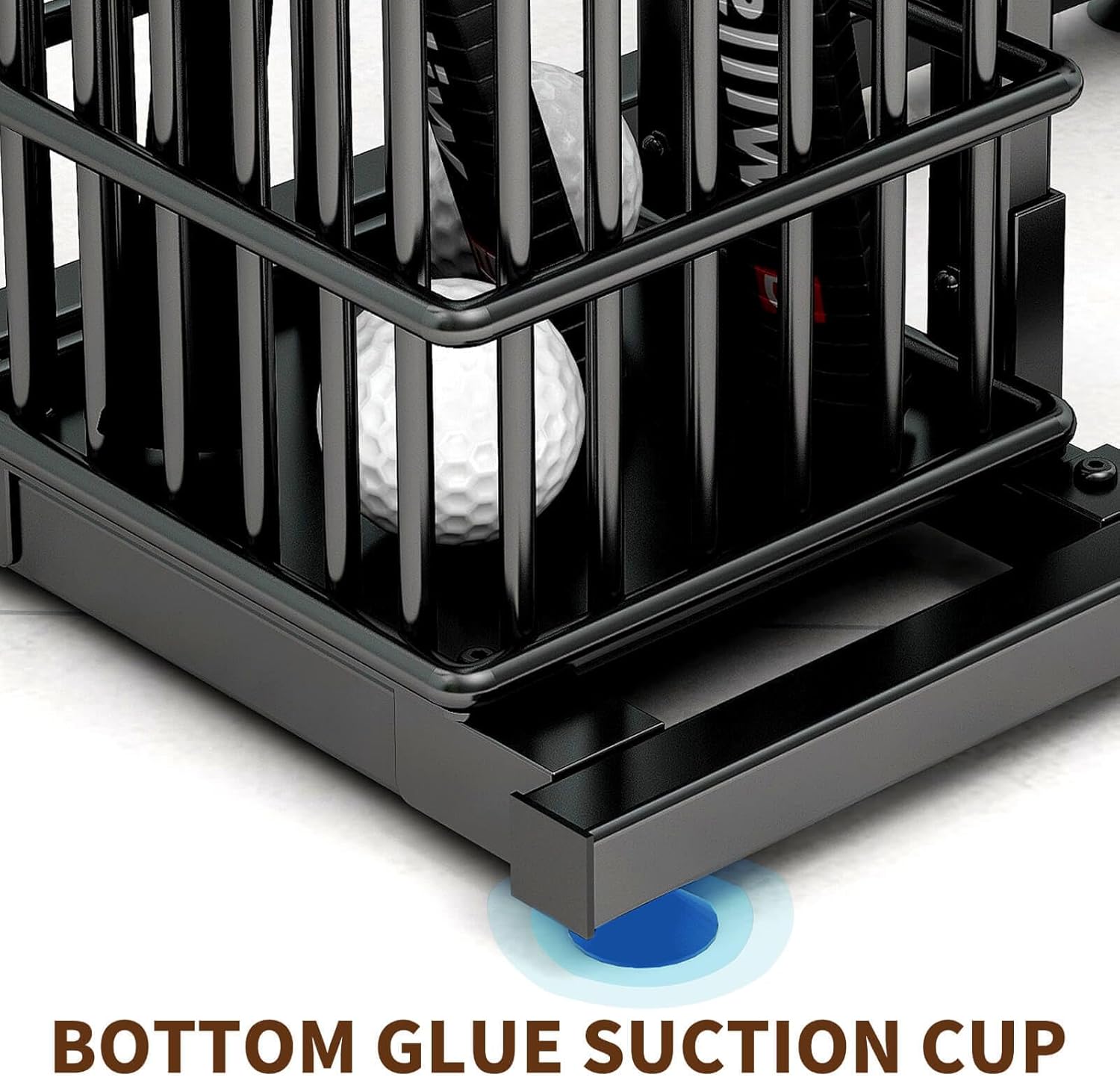 đăLARGE CAPACITY – TWO BASKETS AND HOOKSăThis ball rack is designed with two different sizes of baskets for storing various sizes and types of ball equipment, such as such as golf balls, baseballs, shuttlecocks. The ball organizer and storage also features two hooks design for hanging sport bags, ball caps, jerseys, skateboard, and all your other sportswear.
