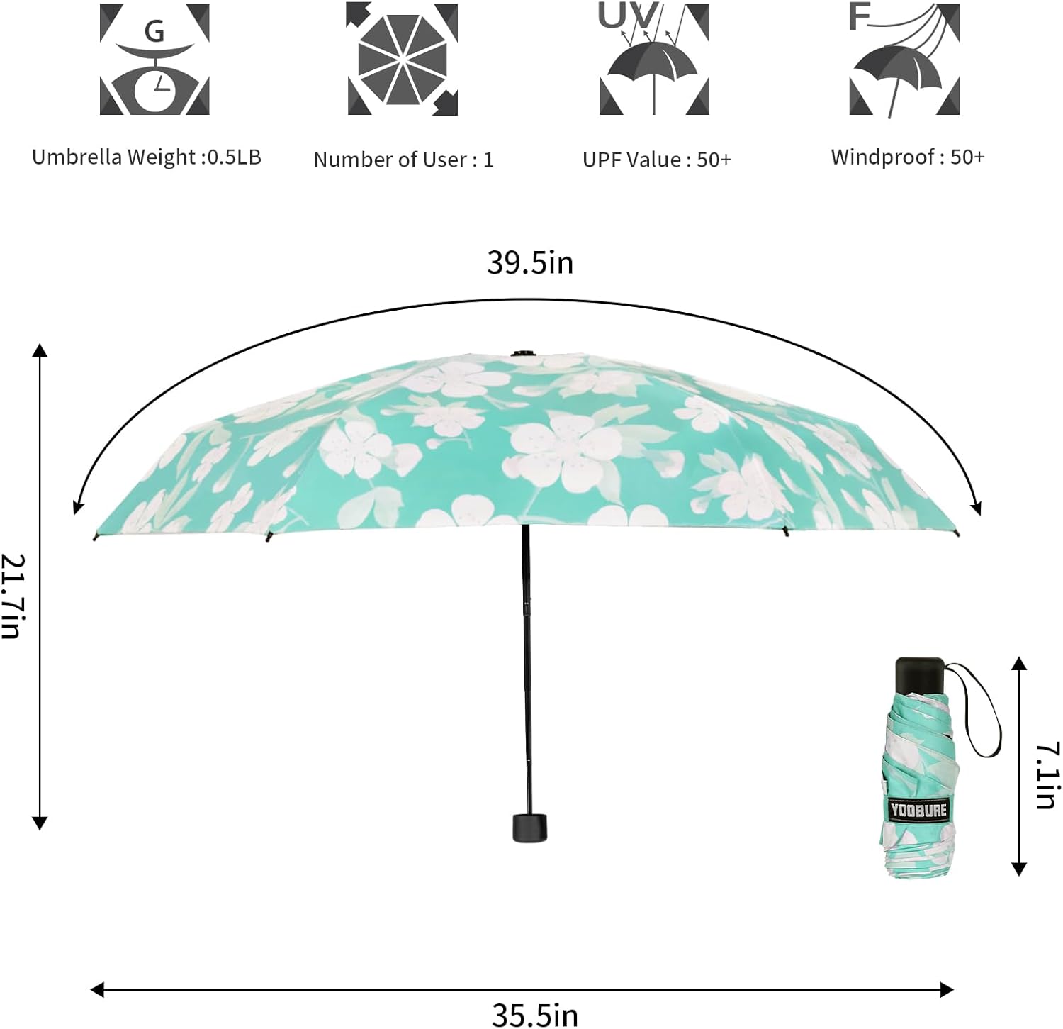 Yoobure Small Mini Umbrella with Case Light Compact Design Perfect for Travel Lightweight Portable Parasol Outdoor Sun&Rain Umbrellas