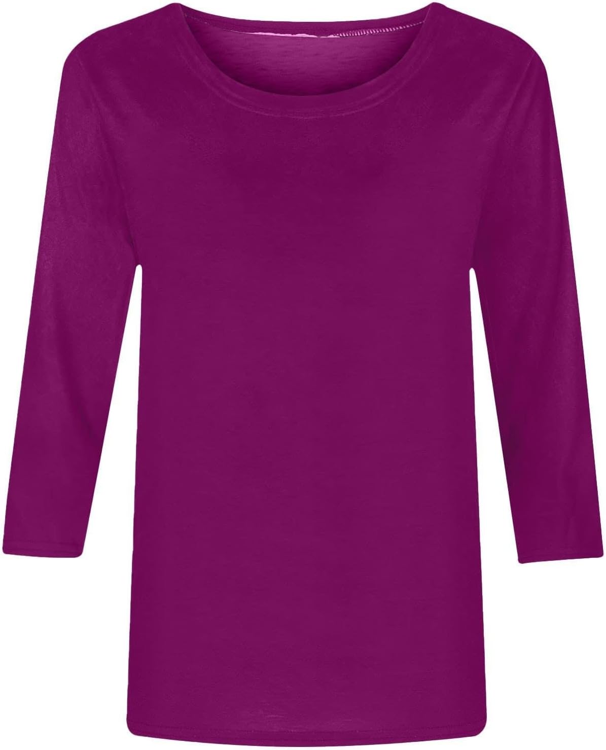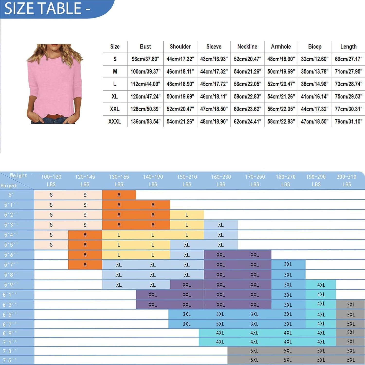YUTANRAL 3/4 Lenght Sleeve Womens Tops Dressy Casual Summer Fall Fashion Trendy Vacation Crew Neck Tshirts Shirts Basic Tees