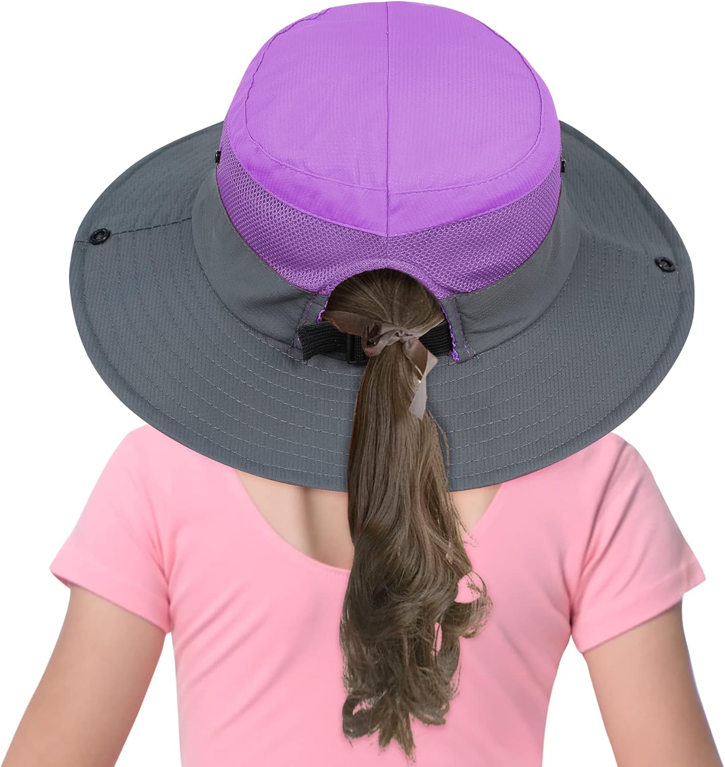 Zando Unique Girls Sun Hat with Ponytail Hole Summer Fishing Beach bucket Hats for Kids