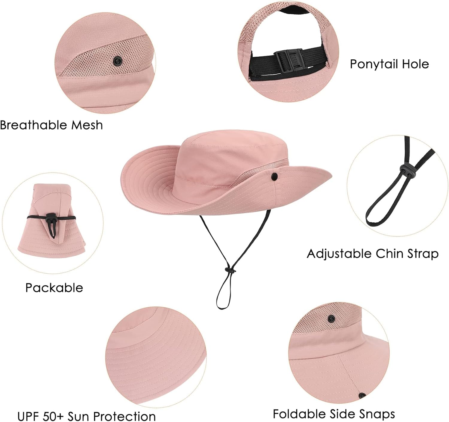 Zando Kids Bucket Hat Girls Sun Hat with Ponytail Hole UPF 50 Outdoor Hat Wide Brim Beach Summer Cap for Kids Ags 4-12