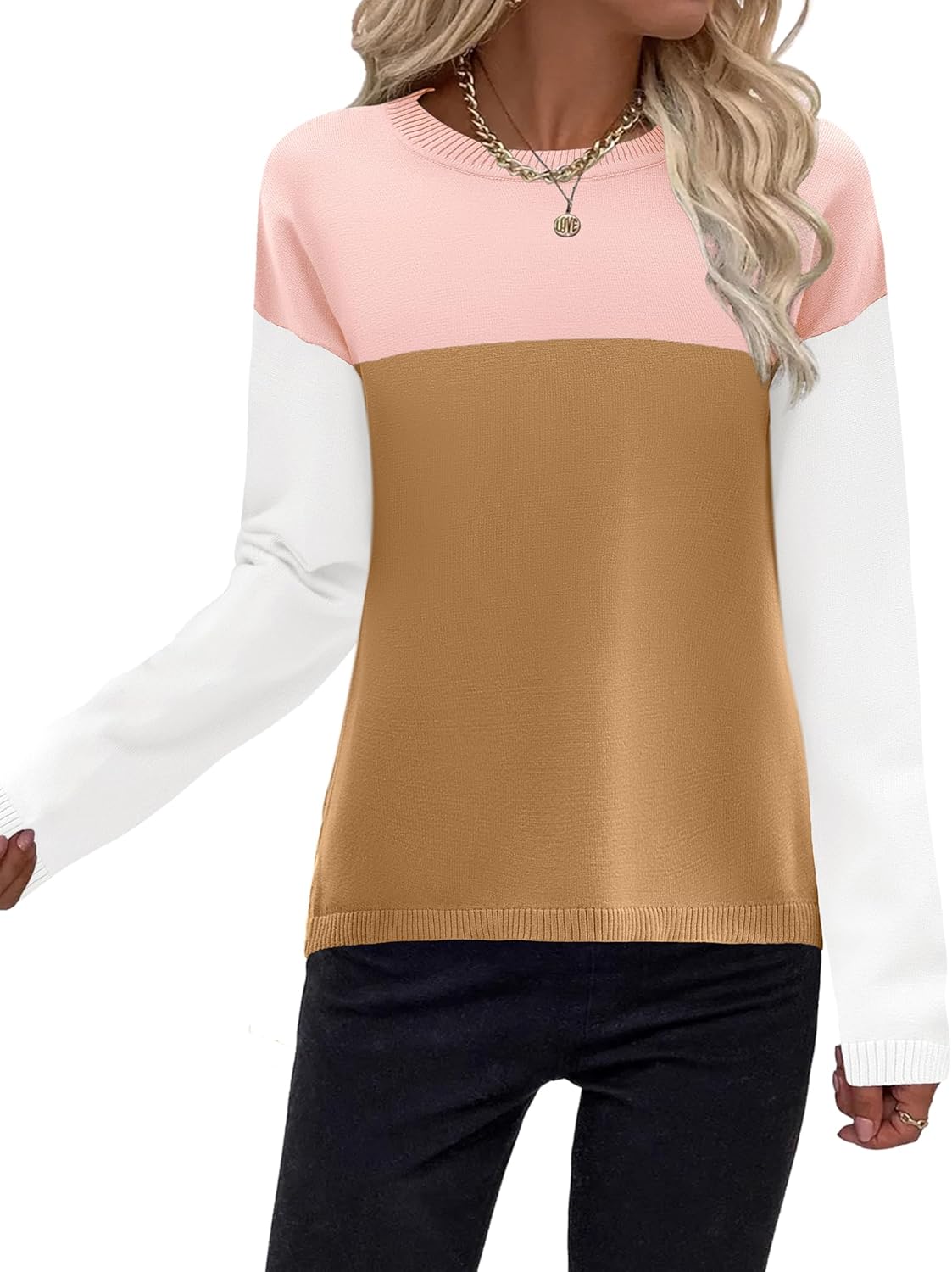 Zeagoo Sweaters for Women Fall Outfits Trendy 2024 Long Sleeve Crew Neck Knit Pullover Sweater Tops