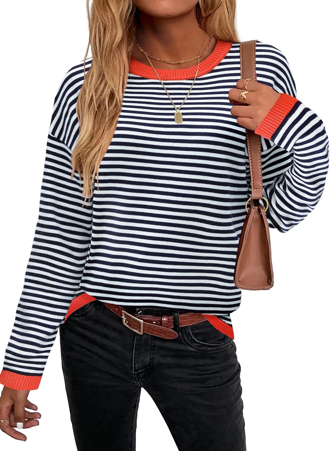 Zeagoo Sweaters for Women Fall Outfits Trendy 2024 Long Sleeve Crew Neck Knit Pullover Sweater Tops