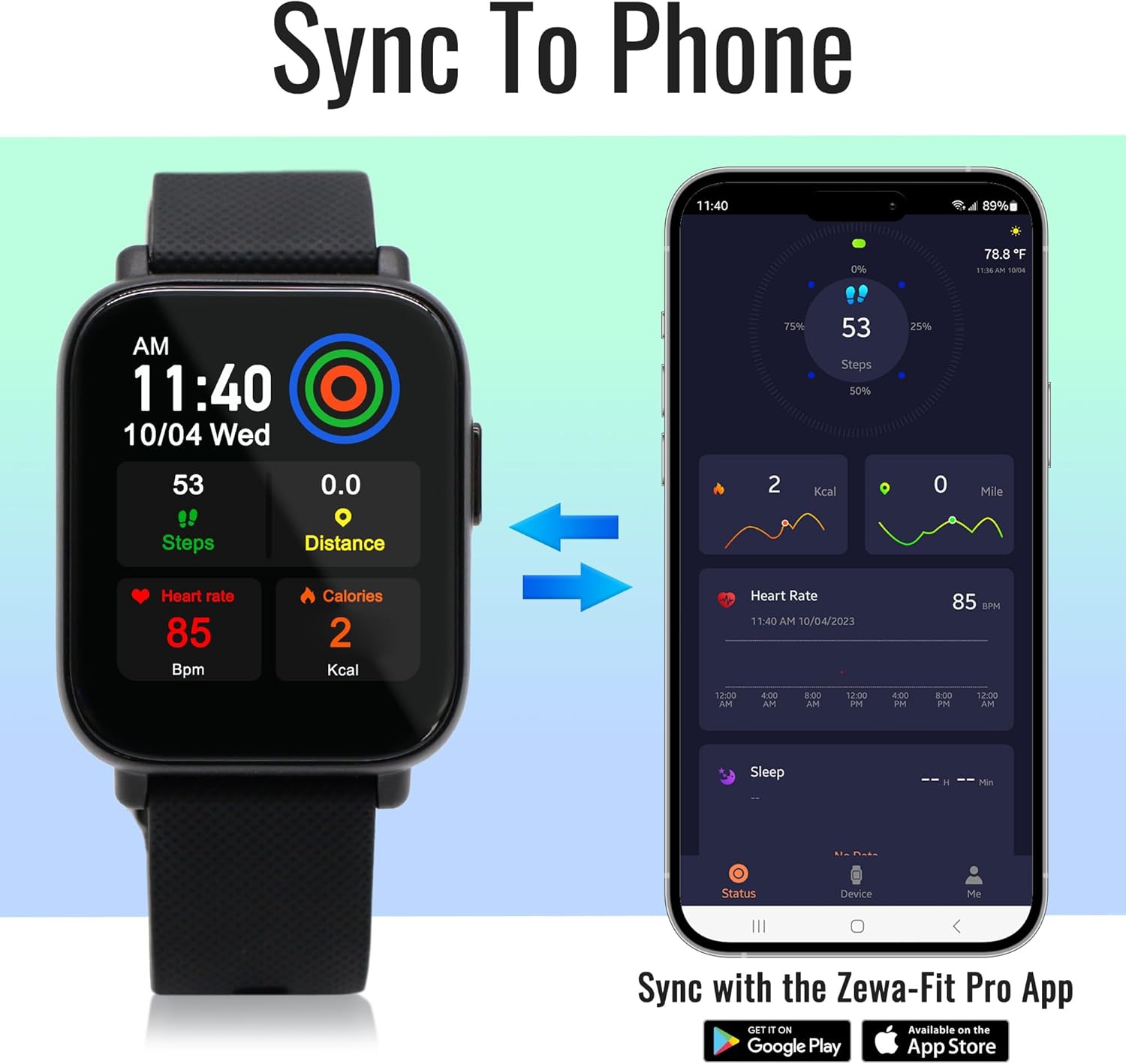 The free Zewa Fit Pro app synchs with the tracker for accurate statistics on steps, calories burned, deviations in sleep patterns, real-time heartrate monitoring and even sedentary reminders!