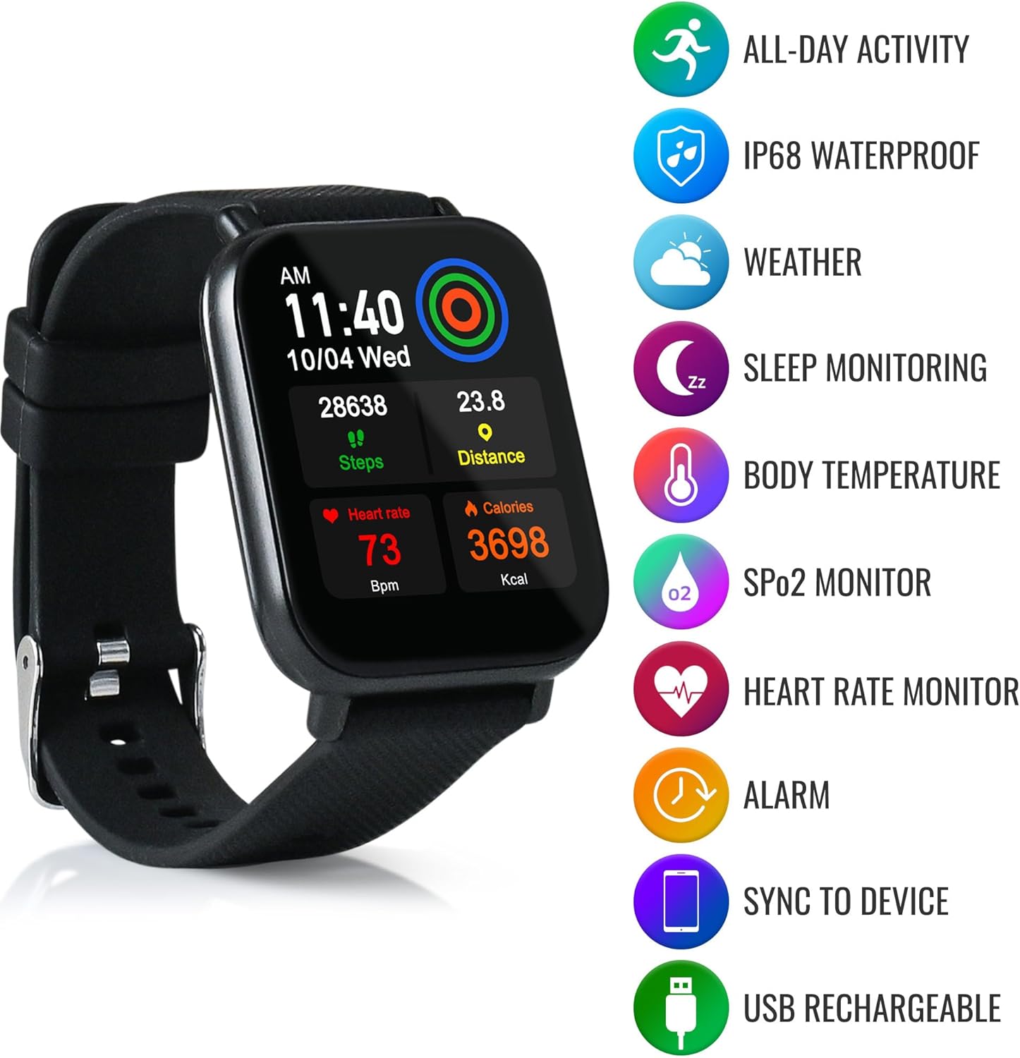 Zewa® Fitness Smart Health Watch with advanced vital measurement features for oxygen levels, heartrate, pulse and more! Syncs with a free Pro app that tracks sleep, distance, calories, steps.