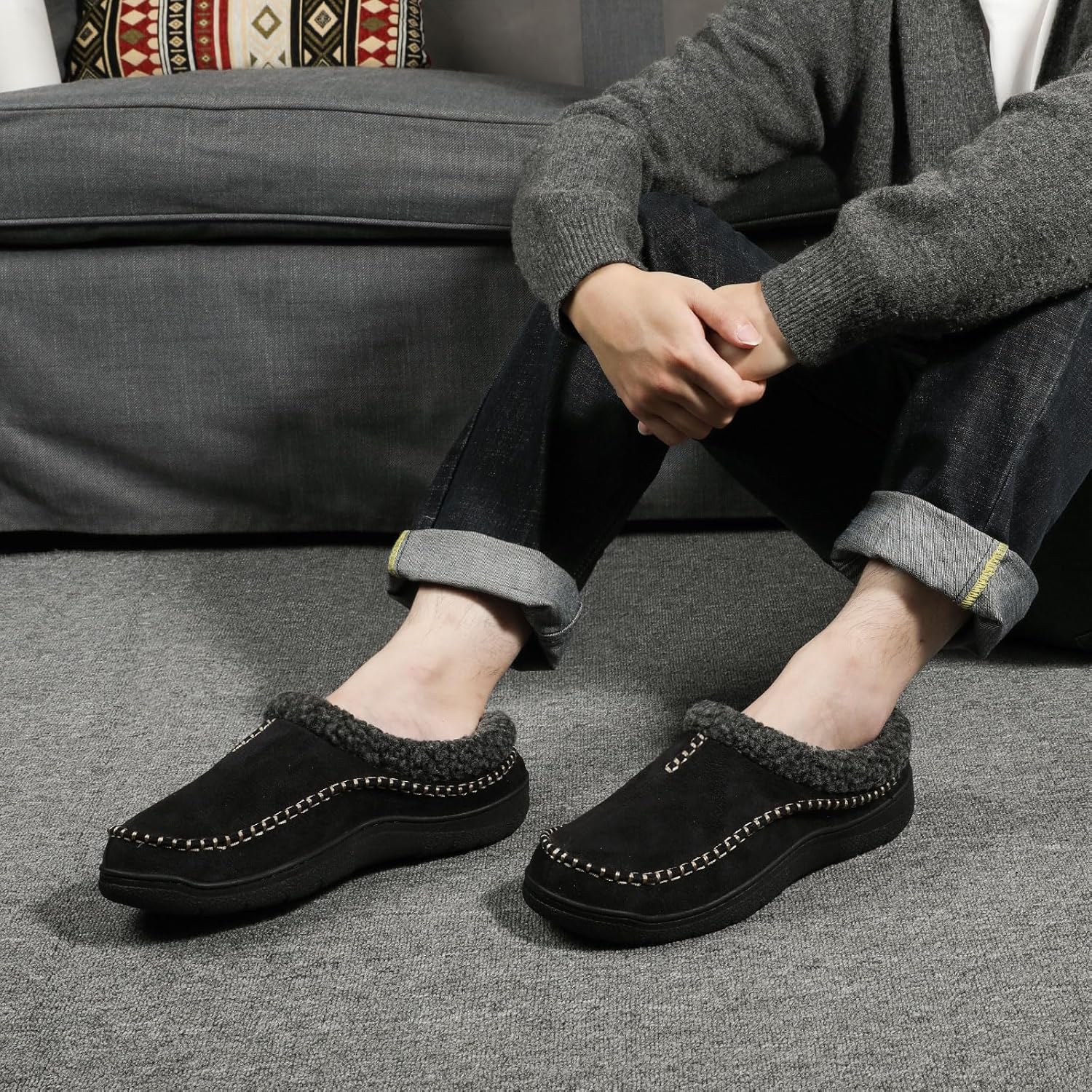 Zigzagger Men’s Slip On Moccasin Slippers, Indoor/Outdoor Warm Fuzzy Comfy House Shoes, Fluffy Wide Loafer Slippers