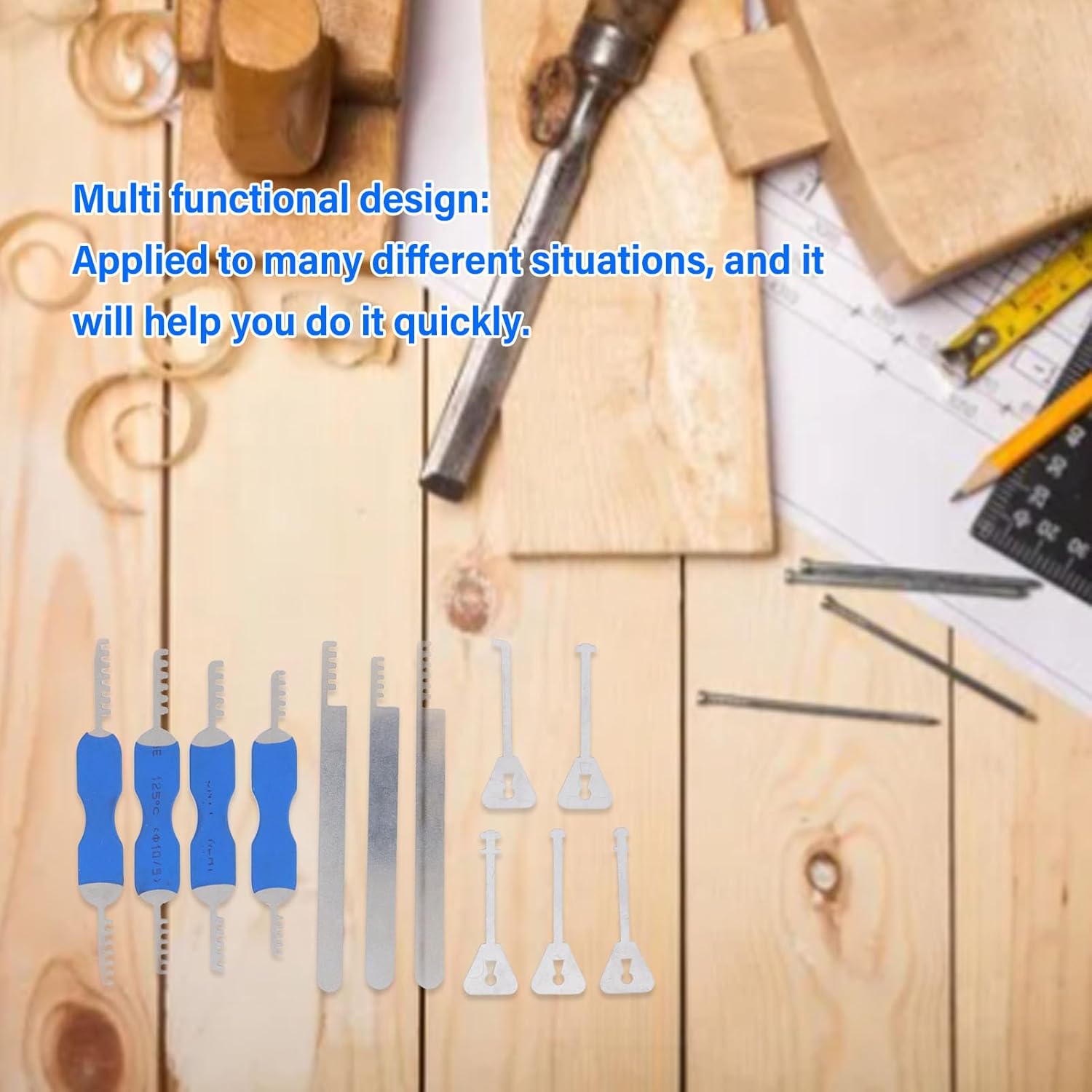1. UNIVERSAL UPGRADE TOOL: This 1mm thick accuracy tool set features 7 different sizes of stainless steel tools, with a 5 piece cabinet repair kit for versatile and emergency use.